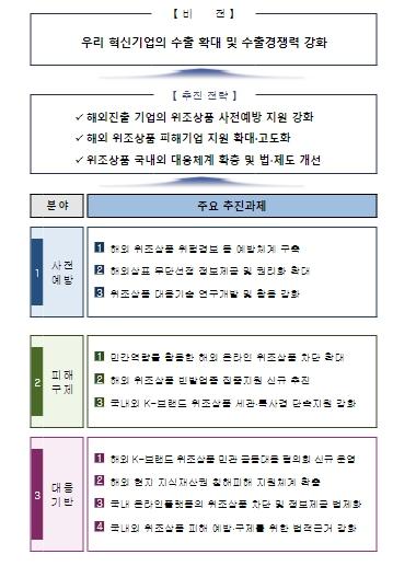 [ 해외 위조상품 피해기업에 대한 지원을 확대하고 고도화한다.]