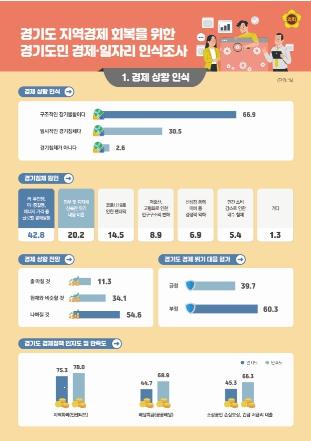 경기도 경제위기 대응에 대한 여론은 긍정평가 39.7%, 부정평가 60.3%로 부정평가율이 높았다. 경기도 경제정책 인지도를 조사한 결과, 도민의 75.3%가 ‘지역화폐’에 대해 알고 있었으나 ‘배달특급’, ‘소상공인 손실보상, 긴급 저금리대출’ 등에 대한 인지도는 각각 44.7%, 45.3%로 상대적으로 낮게 나타났다.