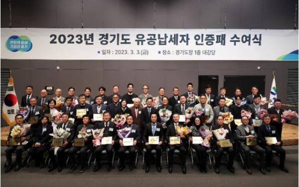 [한국뉴스타임=편집국] 김동연 경기도지사는 3일 납세자의 날을 맞아 경기도청에서 2023년 유공납세자 인증패 수여식을 열고 지역발전에 기여한 유공납세 법인에 인증패를 수여했다.