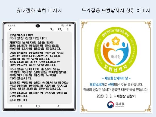 이번 납세자의 날 기념식은 ‘성실한 납세, 튼튼한 재정’ 슬로건으로 모범납세자 등 약 천 명이 모인 가운데 서울 코엑스에서 개최했으며 기념식에 참석한 국세청장은 국가재정에 기여한 공적으로 훈·포장 등을 수상한 모범납세자와 세정협조자, 고액납세의 탑 수여법인을 축하하고, 전국의 모범납세자(1,035명) 수상자에게 축하 메시지 전송과 함께 누리집(알림창)용 이미지를 제공하여 감사의 뜻을 전달했다.