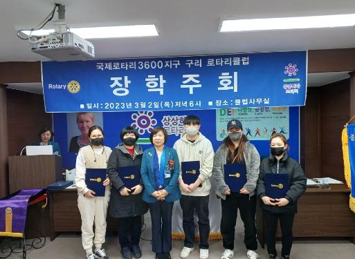 구리 로타리클럽은 수택2동에 거주하는 5명의 우수 인재(고등학생 1, 대학생 4명)를 추천받아 1인당 60만 원씩, 총 300만 원의 장학금을 전달했다.