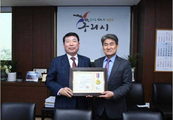 이날 간담회에는 전(前) 삼육고등학교 이승군 교장과 구리시청 관계 직원들이 자리했다. 백경현 시장은 지역 교육 발전을 위해 공헌하고 지난 2월 28일자로 퇴직한 전(前) 이승군 교장에게 감사장을 수여했다.