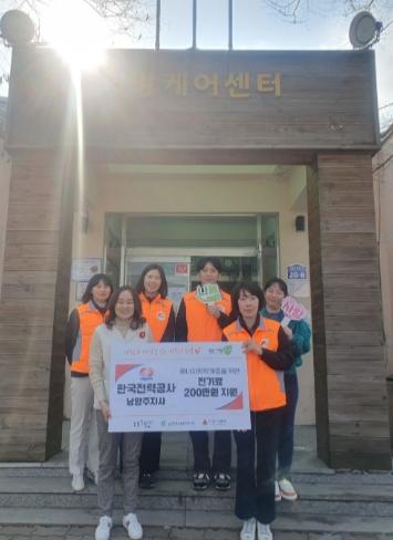 [한국뉴스타임=편집국] 한국전력공사 남양주지사는 지난 3일 남양주시 내 에너지 취약계층 주민의 경제적 부담을 감소하기 위해 각 가정에 10만 원씩 총 200만 원의 후원금을 동부희망케어센터에 전달했다.
