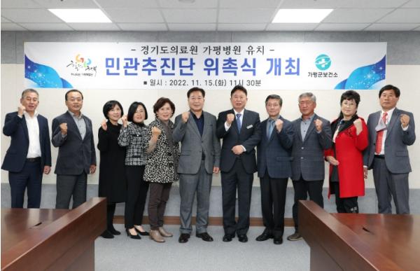 군은 지방소멸을 막을 수 있는 선제적 방안으로 경기도의료원 가평유치를 위해 지난 해 11월 가평병원 유치 민?관 추진단을 일찍이 구성하고 가평의 열악한 의료 환경에 대한 문제인식을 공유하며 공공의료원 유치방안 등을 모색하고 있다.