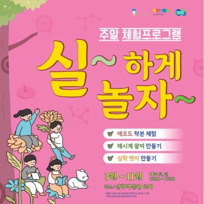 주말 체험 프로그램 “실~하게 놀자~”는 오는 3월 11일(토)부터 11월까지 운영할 예정이다. 매주 토·일 오전 10시부터 오후 5시까지 박물관 로비에서 진행되며, 실학박물관을 방문하는 관람객 누구나 현장에서 자유롭게 참여할 수 있다.