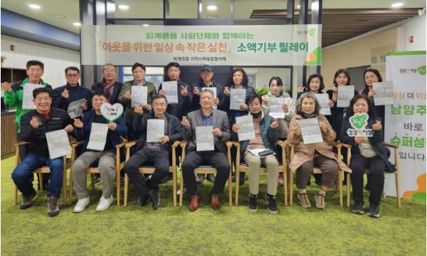 [한국뉴스타임=편집국] 남양주시 퇴계원읍은 지난 6일 지역의 사회단체장들이 퇴계원읍 지역사회보장협의체에 매월 일정 금액을 정기 기부하기로 약속했다고 7일 밝혔다.