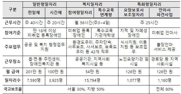 장애인일자리사업은 18세 이상의 미취업 등록장애인에게 일자리를 제공하여 사회참여 확대와 소득보장을 지원하는 사업으로 2007년부터 시행하고 있다.
