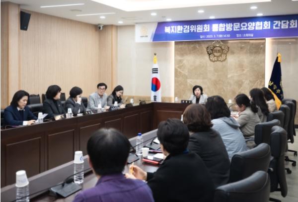 이날 간담회에는 6명의 복지환경위원회 위원들과 송옥화 회장 등 통합방문요양협회 임원진이 참석했으며, 간담회는 복지 관련 소통을 위한 자리로 마련됐다.