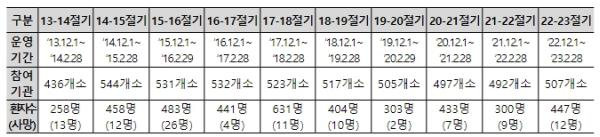 질병관리청은 겨울철 한파로 인한 한랭질환에 대한 주의 환기 및 예방활동 유도 등을 위해 '한랭질환 응급실 감시체계'를 지난 2013년부터 매년 겨울철에 운영하고 있으며,전국 약 500여 개 응급의료기관을 대상으로, 한파로 인한 건강피해 발생을 감시하고, 발생현황 정보 및 주요 발생 특성 정보는 감시 기간동안 질병청 누리집을 통해 일별로 제공*해오고 있다.