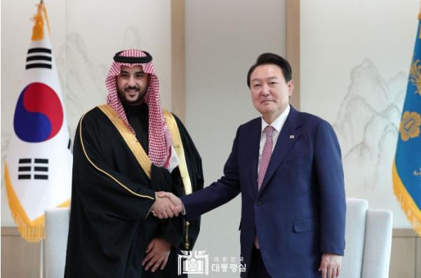 대통령이 “한국은 사우디와 방산 협력을 적극적으로 추진할 계획”이라고 말하자, 칼리드 국방장관 역시 “한-사우디 간의 실질적이며 지속적인 파트너십을 유지할 것”이라고 화답했다.