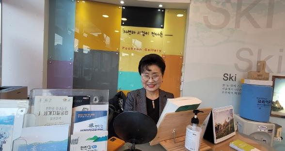 산정호수 인근 관광안내소 ‘포천갤러리’. 여행 정보를 나누고 포천관광지 사진 전시를 하는 이곳이 윤인자 씨의 인생 2막 일터다.