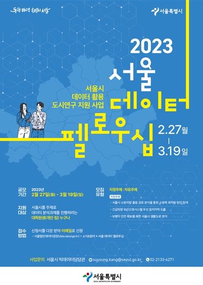 [한국뉴스타임=편집국] 서울시는 2월 27일부터 2023년 '서울 데이터 펠로우십'(이하 ‘펠로우십’) 공모를 진행 중이다.