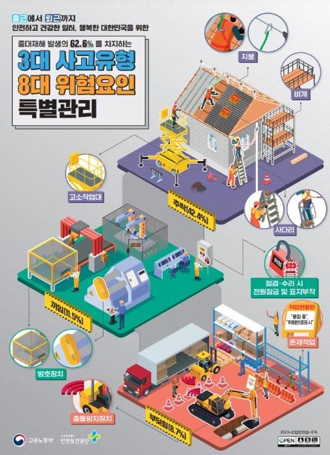 이번 점검에서 고용노동부는, ①중대재해 감축을 위해 노·사가 현장의 위험요인을 스스로 파악하고 개선하는 위험성평가의 중요성과 ②중대재해가 가장 빈번하게 발생하는 3대 사고유형 8대 위험요인 특별 관리의 필요성을 다시 한번 강조했다.