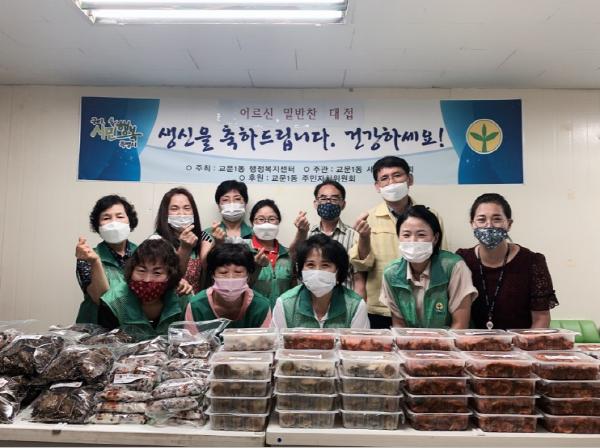 이번 행사는 교문1동 기간단체의 후원으로 4~6월(2분기) 중 생신을 맞은 20명의 어르신들께 제공해드릴 불고기, 모듬전, 겉절이, 영양떡 등 밑반찬을 손수 만들어 관내 독거어르신들에게 직접 전달하였다.