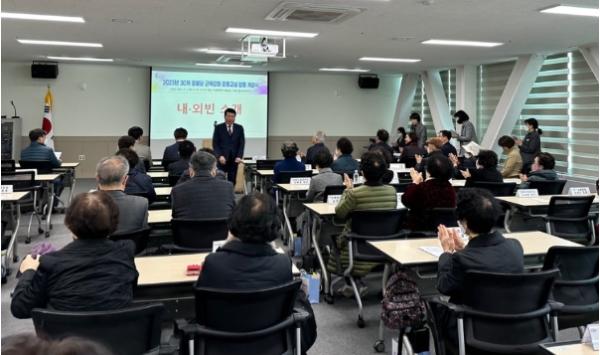 [한국뉴스타임=편집국] 구리시는 지난 7일 구리시 여성행복센터 4층 대회의실에서 관내 30개 경로당, 대한노인회구리지회와 함께 ‘경로당 근력강화 운동교실’ 합동 개강식을 개최했다.