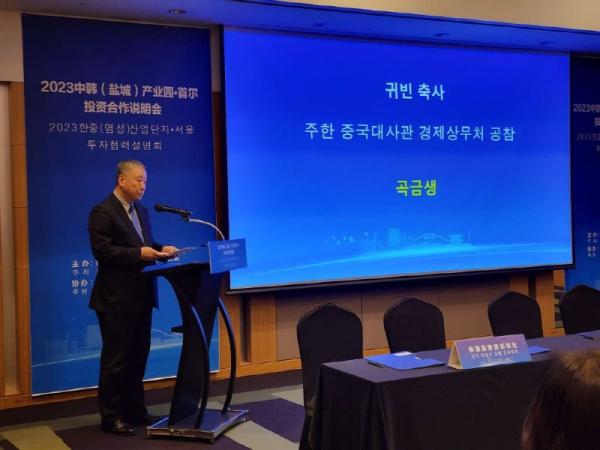 구진성(谷金生) 주한 중국대사관 경제상무처 공사참사관은 축사를 통해 올해 중·한 관계가 새로운 30년의 첫 해를 맞았다고 말했다. 이어 그는 옌청시가 중한(옌청)산업단지의 구조 및 제도적 우위를 한층 더 개선하고 미래 발전을 이끄는 신흥산업에 포커스를 둬 양국 경제무역 협력과 우호적인 관계 발전 심화에 기여하길 바란다고 전했다. 구 공사참사관은 한국 각계, 특히 경제계 유식지사(有識之士, 식견이 탁월한 사람)가 중국이라는 큰 시장의 발전 보너스 효과를 함께 누릴 수 있도록 기회를 잡길 바란다고 덧붙였다.