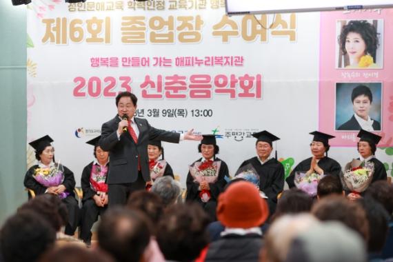 [한국뉴스타임=편집국] 남양주시가 위탁 운영하고 있는 해피누리노인복지관은 9일 ‘제6회 행복누리학교 졸업장 및 입학 허가서 수여식’을 개최했다.