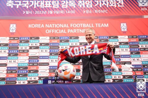 대한축구협회(KFA)는 지난달 27일 축구 국가대표팀 새 사령탑으로 독일 출신의 클린스만 감독을 선임했다고 밝혔다. 클린스만 감독과의 계약기간은 3월부터 2026년 북중미 월드컵 본선까지이며, 재임 중 한국에 거주하는 것을 계약 조건으로 했다.