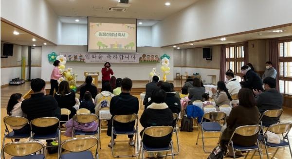 원장 선생님의 입학 허가선언을 시작으로 입학 축하 인사가 이어졌으며, 생애 첫 유치원 생활을 함께 할 담임 선생님의 소개가 끝난 후 각 학급으로 이동했다. 신입생 유아들은 보호자와 함께 교실에서 놀이하는 시간을 갖고, 담임 교사는 관찰을 토대로 한 풍부한 놀이 지원 제공 및 개별 유아의 바른 성장 지원을 약속했다.