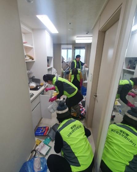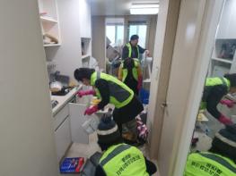 이번 활동은 질병으로 인해 스스로 주거지 개선과 정리가 어려운 가구를 대상으로 진행됐으며, 지역사회보장협의체 위원들은 장기간 집안에 가득 쌓인 채로 방치돼 악취를 풍기는 쓰레기와 재활용품을 분리배출하고 가전제품의 묵은 때를 제거하는 등 청소 및 방역 소독을 실시했다.