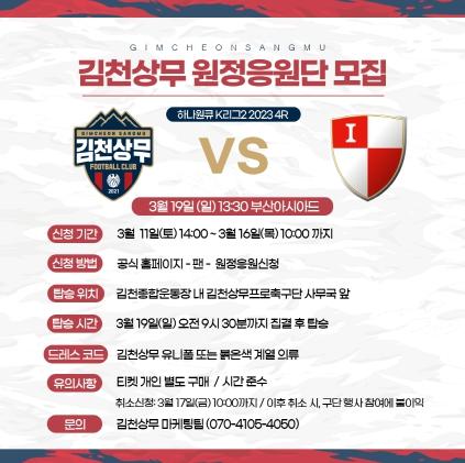 [한국뉴스타임=편집국] 김천상무프로축구단이 부산아이파크전 원정 응원단을 모집한다.