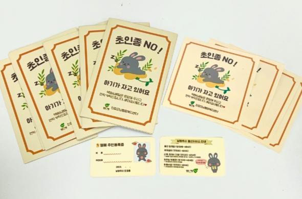 [한국뉴스타임=편집국] 남양주시 진접오남행정복지센터는 올해 관내 출생신고 가정을 대상으로 초인종 스티커와 토끼띠 탄생 축하 카드를 배부하고 있다고 10일 밝혔다.