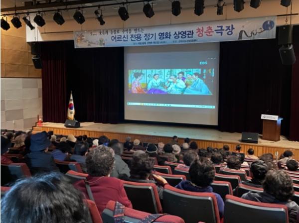 올해 첫 번째 청춘극장 영화는 1967년 개봉작 ‘팔도강산’으로, 치매 어르신과 가족, 관내 독거 어르신 100여 명이 즐거운 과거를 회상하며 긍정적 에너지를 회복하는 힐링의 장이 됐다.