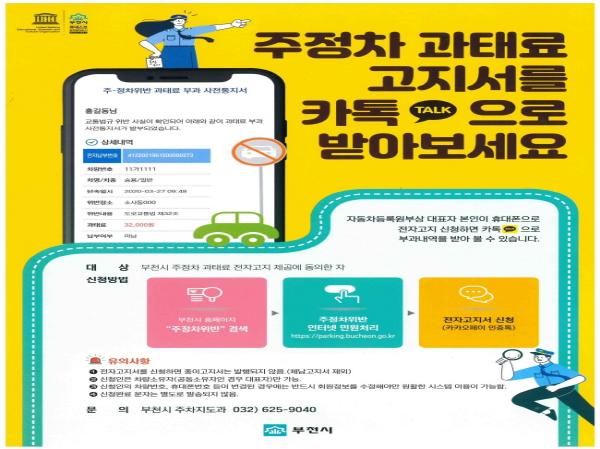 [KNT한국뉴스타임] 부천시가 올해부터 ‘주정차위반과태료 전자고지 카톡서비스’를 시작한다.