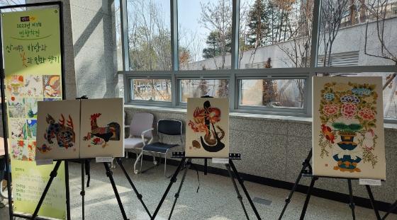 이번 전시회는 여성행복센터 정규강좌인 민화반에서 11명의 수강생들이 그린 화조도(꽃과 새가 사이좋게 조화를 이루는 모습)와 화접도(활짝 핀 꽃을 배경으로 나비가 노니는 모습) 등 30여 점의 작품이 전시돼 있다.