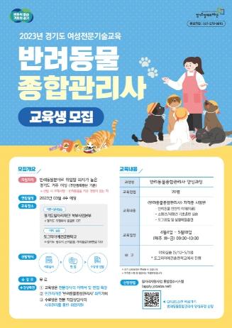 [한국뉴스타임=편집국] 경기도가 여성의 경제활동 촉진을 위해 4월부터 11월까지 총 160명을 대상으로 ‘여성 전문기술 교육’을 진행하기로 하고 첫 과정인 ‘반려동물 종합관리사 양성 과정’ 참여자를 오는 3월 26일까지 모집한다.