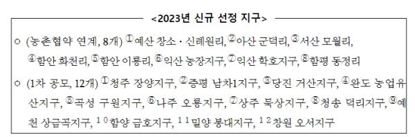 [한국뉴스타임=편집국] 농림축산식품부는 유해시설 정비를 지원하는 농촌공간정비사업의 2023년도 신규 지구 1차 공모에서 총 12개 지구를 선정 완료했다.