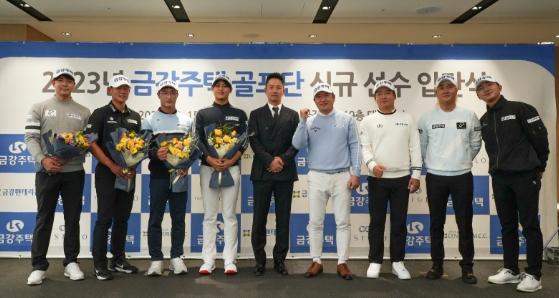 ‘금강주택 프로골프단’은 ‘아시안투어 인터네셔널 시리즈 코리아’ 우승자 옥태훈(25)을 필두로 허인회(36), 최호성(50), 김승혁(37), 신용구, 최영준, 김경민, 한태현까지 총 8명으로 구성됐다. 이들은 2023 시즌부터 금강주택의 글자와 로고가 새겨진 의류와 모자를 쓰고 KPGA 투어를 누빌 예정이다.