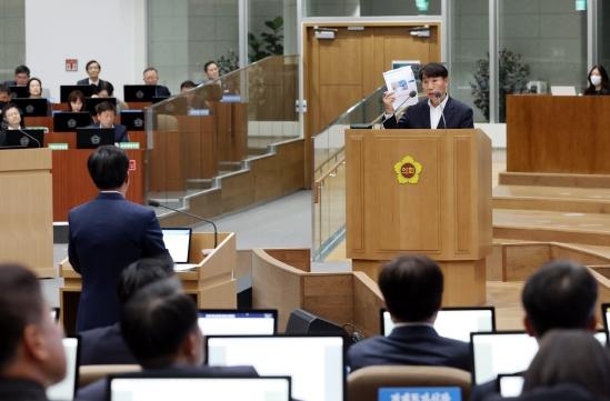 이에 이홍근 의원은 군공항이 포함된 통합공항 추진 여부에 대한 명확한 해석을 요구하며 “국제공항으로 이야기하는 것이 군공항의 부정적인 이미지를 희석시키거나 위함이 아닌지 의구심이 든다”며 “국제공항을 추진한다면서 경기국제공항추진단 단장에 군공항 전문가를 임명한 이유를 설명해달라”고 물었다.