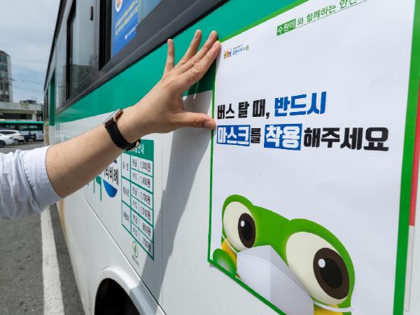 6월 초부터 모든 시내버스와 택시에 ‘버스(택시) 탈 때, 반드시 마스크를 착용해 주세요’라는 문구가 담긴 홍보 스티커를 부착해 이용자들의 마스크 착용을 유도하고 있다.