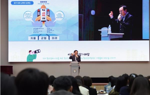 오늘 행사는 임 교육감의 특강을 시작으로 ▲경기 특수교육 정책 강연 ▲특수교육지원센터 역할 강화 제고 방안 협의 ▲지원센터 교사의 삶 공감 토크 시간으로 이어졌다.