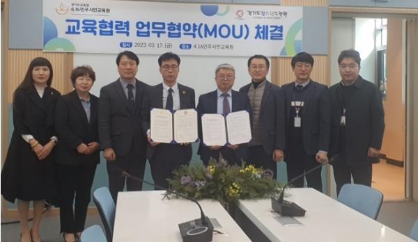 4.16민주시민교육원(원장 전명선)이 경기도청소년수련원(원장 양금석)과 체험 중심 시민·인성교육 활성화를 위해 상호 협력한다.