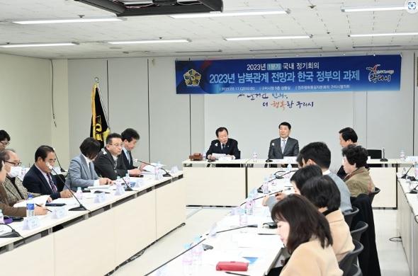 이날 정기회의는 ‘2023년 남북관계 전망과 한국 정부의 과제’라는 주제로 개최됐으며 ▲보궐위원 위촉장 전달 ▲전 분기 의견수렴 결과 보고 ▲주제 영상 시청 및 논의 ▲협의회 활동 보고 ▲향후 사업추진 계획 논의 순서로 진행됐다.