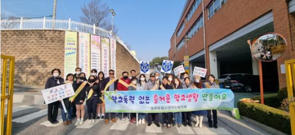 [한국뉴스타임=편집국] 포천동 청소년지도협의회는 지난 20일 포천여자중학교 등교 시간에 맞춰 포천동 청소년지도협의회 및 포천동행정복지센터, 포천경찰서(여성청소년과), 신북파출소, 포천여자중학교 교사 및 학생 등과 함께 민관합동으로 학교폭력예방 캠페인을 실시했다.