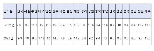 또한, 119구급대로 이송된 심정지 환자의 병원 전 자발순환 회복률 도 2021년 9.8%에서 2022년 9.9%로 소폭 상승한 것으로 나타났다.