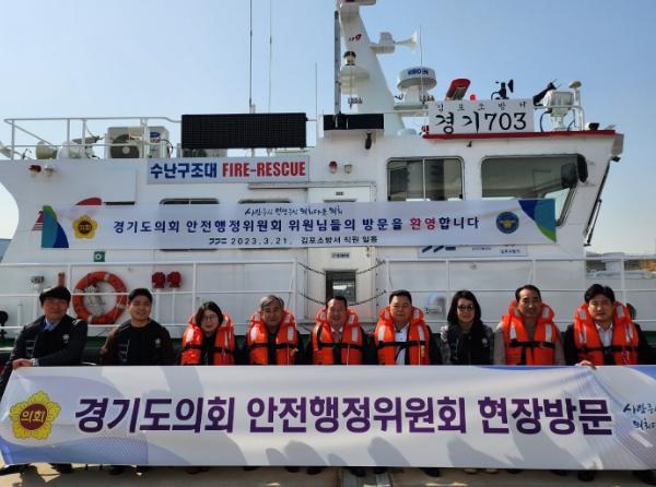 안전행정위원회 위원들을 김포소방서 119수난구조대를 방문해 수난구조대장으로부터 주요 업무 및 현황을 청취하고, 화재 및 물놀이 안전사고 대응을 위한 소방정과 수난구조 장비 등을 살펴본 후 직원들을 격려했다.