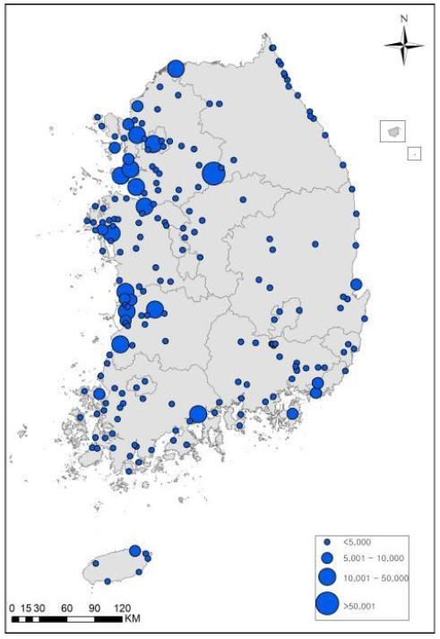 겨울철새 및 오리과조류는 남한강(여주-충주), 장항해안, 남양만, 한강하류, 만경강하류 등 중부지역 및 서해안에 집중적으로 분포했다.