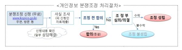 개인정보 분쟁조정 제도는 개인정보 유출 등의 피해가 발생했을 때 침해 주체와 피해자간 소송없이 문제를 신속?간편하게 해결(합의 유도 또는 조정 성립)해 주는 제도이다.