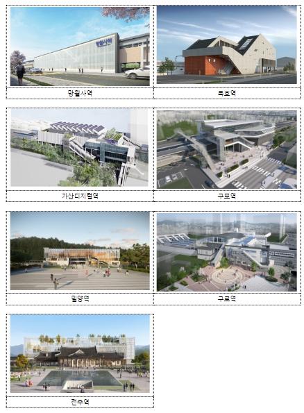 올해 사업 규모를 확대하여 구리역·과천역·모란역 등 9개 역사*에 대한 설계 공모를 신규로 착수하는 한편, 현재 공사 진행 중인 7곳 중 망월사역은 연내 공사를 완료하고, 설계 진행 중인 31곳 중 천안·광주송정·정동진 등 10개 역사는 올해 설계를 마무리하고 공사에 착수할 예정이다.