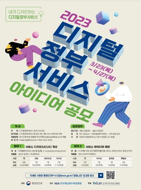 공모전은 행정안전부가 주최하고 한국지능정보사회진흥원이 주관하며, 3월 23일부터 4월 27일까지 공모를 실시한다.