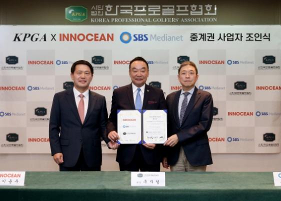 ㈜한국프로골프투어(KGT, 대표이사 김병준)가 ㈜이노션(대표이사 사장 이용우, 이하 이노션), ㈜SBS미디어넷(대표이사 김계홍, 이하 SBS미디어넷)과 28일 방송 중계권 사업자 조인식을 진행했다.