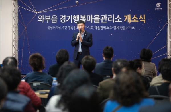김현택 의장은“행복마을관리소의 개소를 위해 힘쓰신 관계자 여러분의 노고에 깊은 감사의 말씀을 드린다”고 전하며“와부읍 행복마을관리소가 지역주민들의 어려움에 귀 기울이고 힘이 되는 지역사회의 든든한 구심점이 되길 바란다”고 말했다.