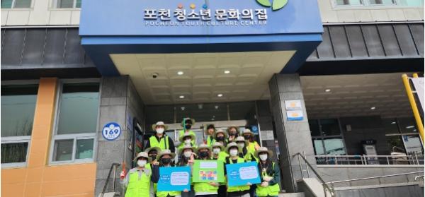 [한국뉴스타임=편집국] 포천시에서 운영하는 포천청소년문화의집 청소년방과후아카데미 소속 문화기획봉사단은 지난 25일 환경캠페인 봉사활동으로 신읍동 일대에서 플로깅을 실시했다.