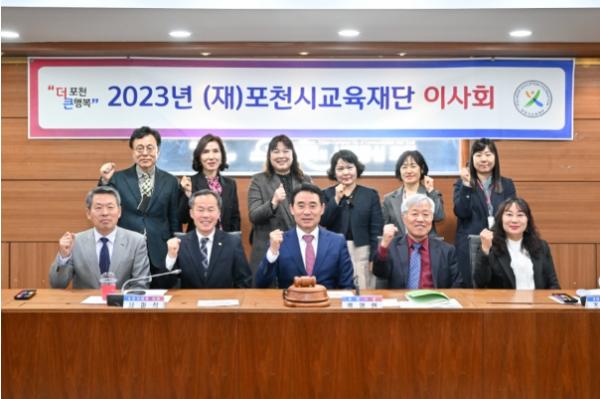 (재)포천시교육재단(이사장 백영현)은 지난 27일, 포천시청 2층 시정회의실에서 이사장 등 재단 임원들이 참석한 가운데 2023년도 제1차 이사회를 개최했다.