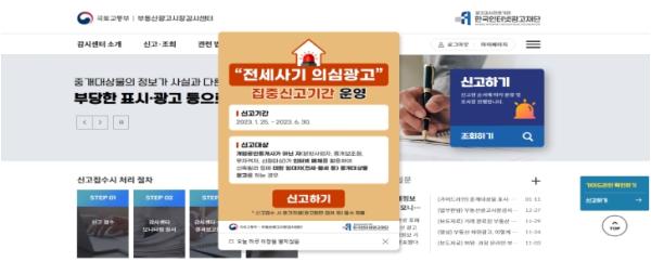 국토교통부와 부동산광고시장감시센터(한국인터넷광고재단)는 분양대행사 등의 불법 온라인 광고와 전세사기 의심매물에 대해 6월 30일까지 집중 신고기간을 운영하고 있으며, 위법사항 확인 시 수시로 수사의뢰하여 허위?미끼매물 퇴출에 앞장설 계획이다.