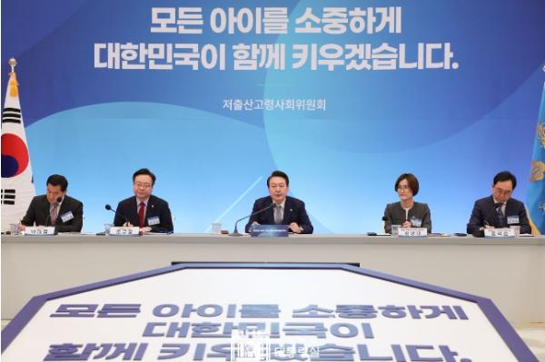 대통령은 회의를 시작하면서 "저출산 문제는 중요한 국가적 어젠다이고 정부와 민간이 합심하여 풀어가야한다"며 저출산 문제의 심각성을 언급했다. 또 "과학적 근거에 기반하여 정책을 평가하고 혁신해야 한다"고 당부한 후, "가장 중요한 것은 우리 아이들을 국가가 확실히 책임진다는 믿음과 신뢰를 국민께 주는것"이라고 강조했다.